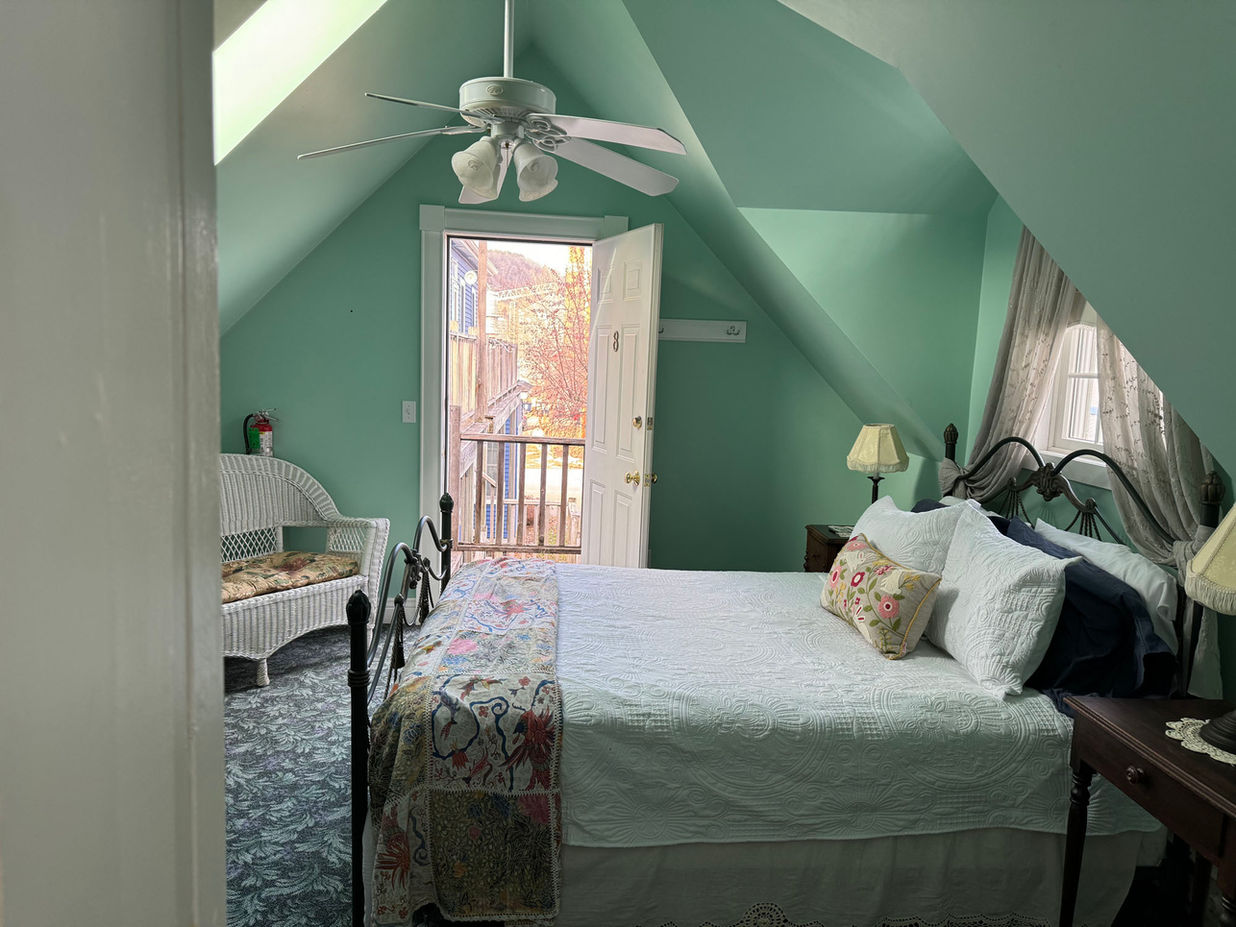 Gaze at the stars through the skylight in our ‘Stargazer’ bridal suite at The Wen Inn. Enjoy this private getaway with a queen-size bed and skylights directly above the bed and bathtub. Located on the second floor, this romantic suite has a private entrance and is accessible by stairs leading up to the deck.